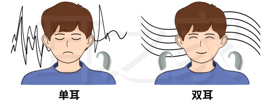 单侧佩戴助听器会导致听力的不平衡,影响听觉的准确性和舒适度。特别是在嘈杂环境中,单侧佩戴助听器获得语言信息有限,容易造成疲劳,影响语音理解和沟通的能力。长期如此将产生听觉剥夺现象,未佩戴侧缺乏声刺激锻炼就像长久卧床腿部萎缩的肌肉一样用进废退。