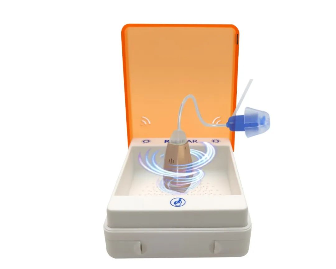 2. 不用时将助听器置于干燥盒内,干燥剂变色应及时更换。